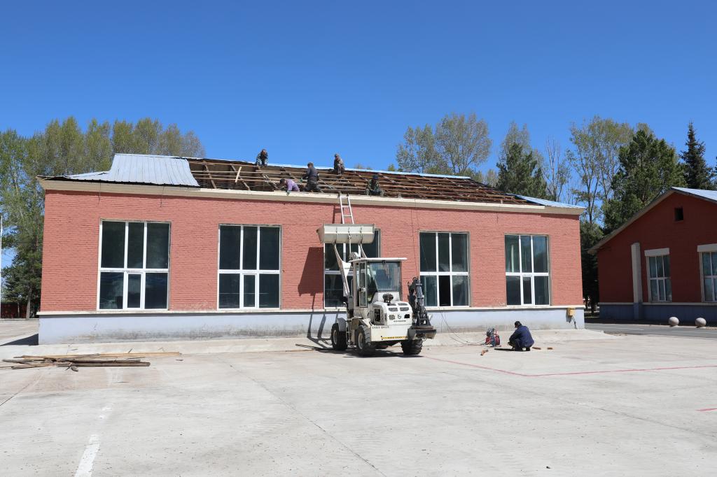 得知情况后,中心主任曹力猛第一时间带领工作人员到现场查看,详细了解房屋受损情况后,立即指挥人员用防雨布将裸露房顶遮盖,并安排技术人员和相关工作人员对修缮屋顶所需建筑材料进行测算、采买。5月28日,中心组织教职工临时成立了一支维修队开展修复工作。维修中,大家分工明确,合理利用建筑材料,从屋顶保温、瓦楞找平到彩钢瓦安装,施工人员都进行精心测量、细致安排,力求精益求精。经过两天的修缮,中心破损的房顶全部修复,消除了房屋安全隐患,为中心的工作环境提供了安全保障。